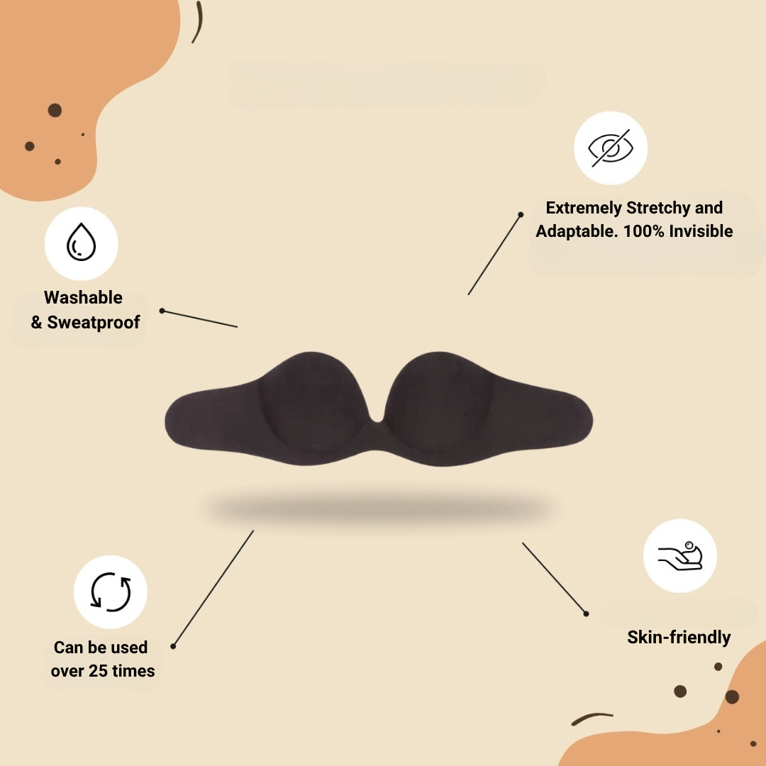 Designed for backless, strapless, and special-occasion outfits, this adhesive push‑up bra adds natural volume, stays secure all day, and feels like you’re wearing nothing at all.